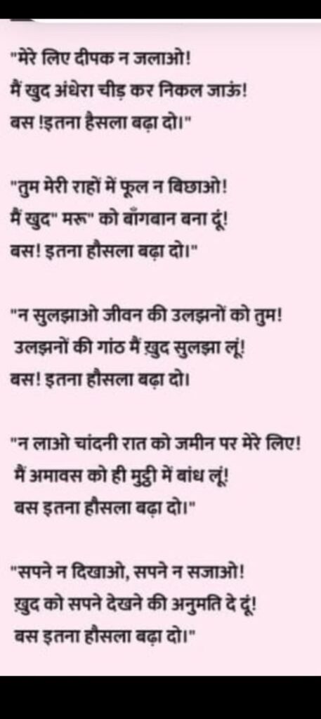 जिंदगी में आयाम ऐसा हासिल करो किवक्त बेवक्त लोग तुम्हें सराहें। मंजिल सिर्फ आसमां पाने की न हो तुम्हारी,दिल की…